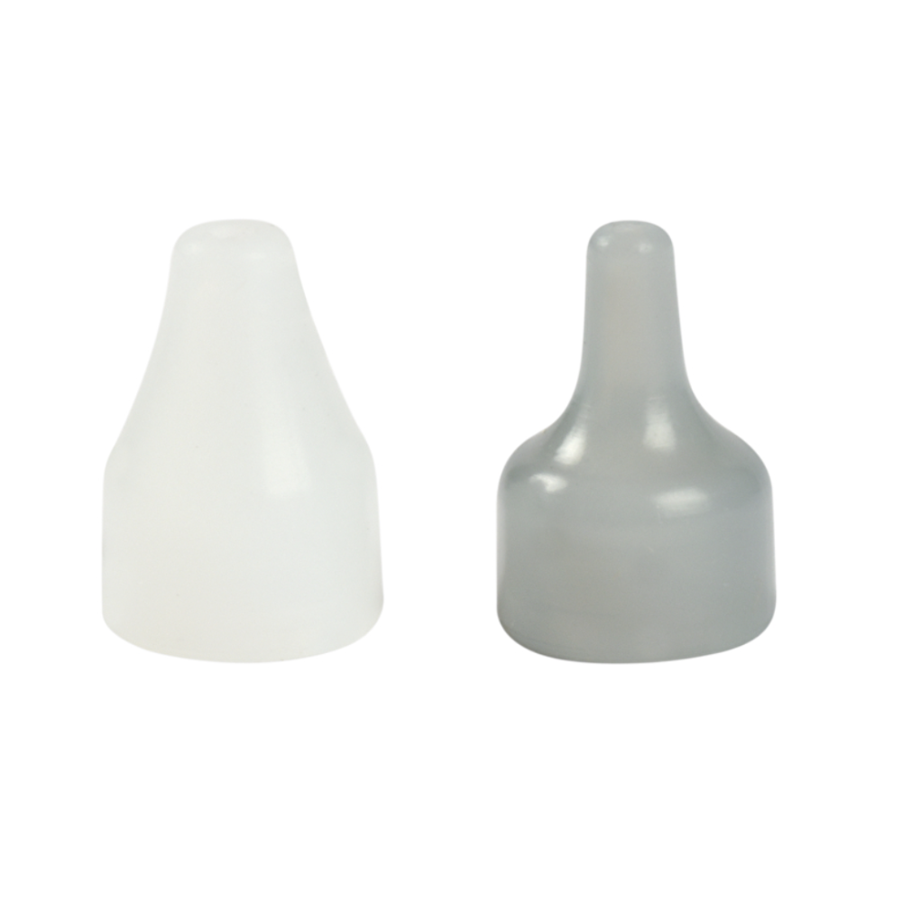 - у набір входять 2 м’які змінні силіконові насадки, адаптовані до віку та потреб дитини: вузька насадка використовується для маленьких дітей (0 - 3 місяці) або рідких виділень і ширша для більших діток (3+ місяці) або густих виділень.