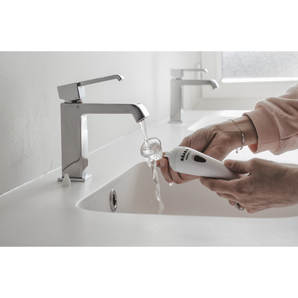- гігієнічність; електронний метод аспірації дозволяє уникнути попадання в порожнину рота виділень з носа. Слиз потрапляє в знімний резервуар, який після використання легко розбирається і промивається мильною теплою водою. Також знімні деталі можна стерилізувати (макс 80°C).