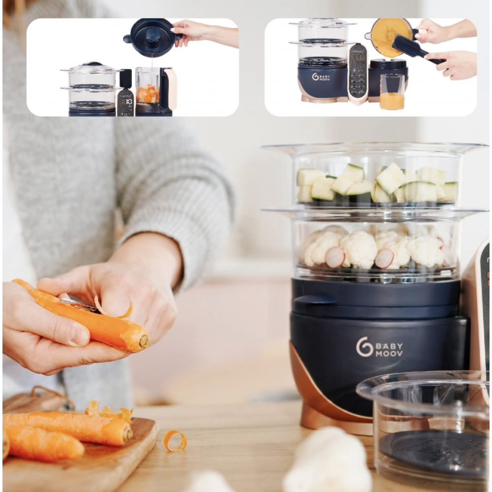 Ергономічний блендер-пароварка Babymoov максимально функціональний і при цьому не займає багато місця. Більше не потрібно контролювати час приготування, розраховувати кількість води. Nutribaby XL оснащений звуковими та візуальними сигналами (які сигналізують про закінчення роботи) та автоматичним відключенням.