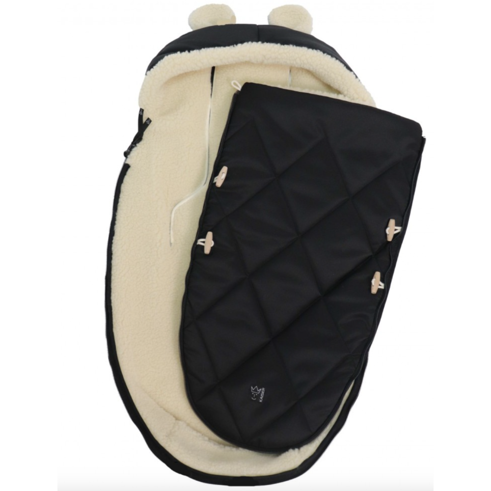 Чорний Kaiser XL Ears Wool — практичний і стильний вибір на щодень узимку. Овчина регулює мікроклімат усередині, зберігаючи тепло й сухість, тоді як щільний водовідштовхувальний верх протистоїть вітру та опадам. Формат 2в1 дозволяє використовувати аксесуар як чохол на ніжки або вкладку/спальний мішок для немовляти у холодний сезон.