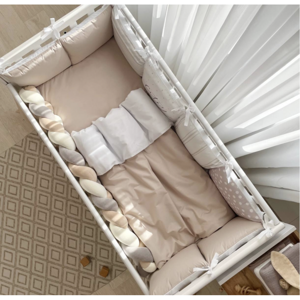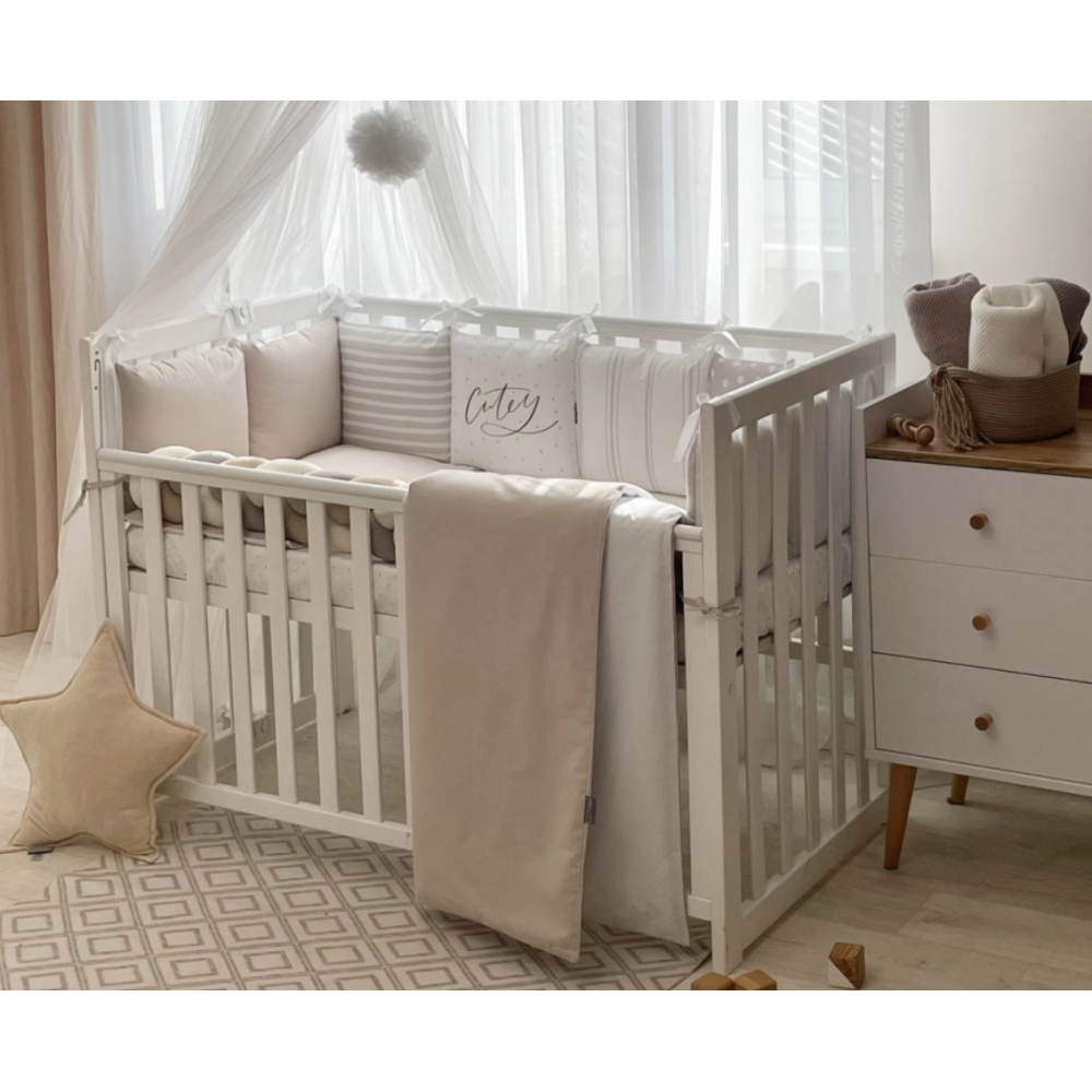 Комплект постільної білизни з 6 предметів (бортики, ковдра, подушка, підковдра, наволочка, простирадло), 100% бавовна.