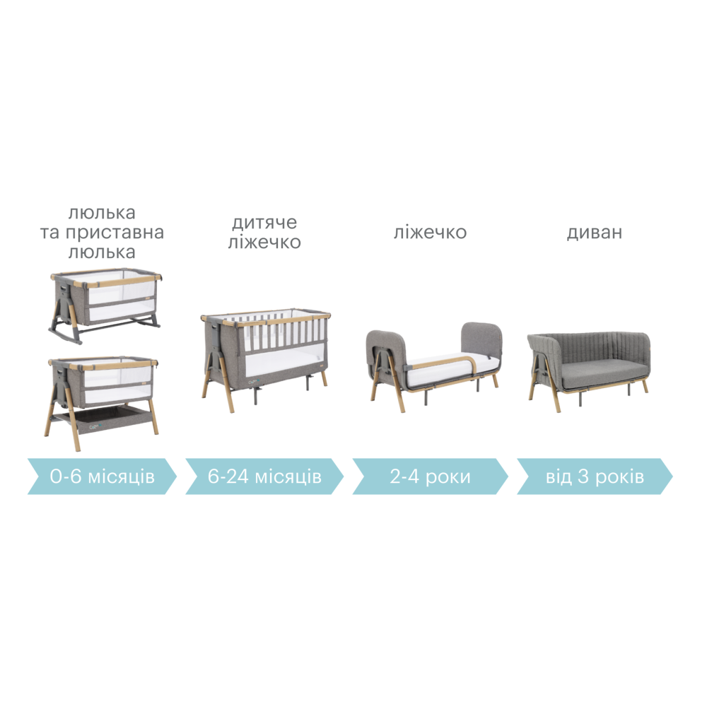 - Для трансформації люльки в ліжко від 2 років та диван купується додатковий комплект Junior Bed & Sofa.