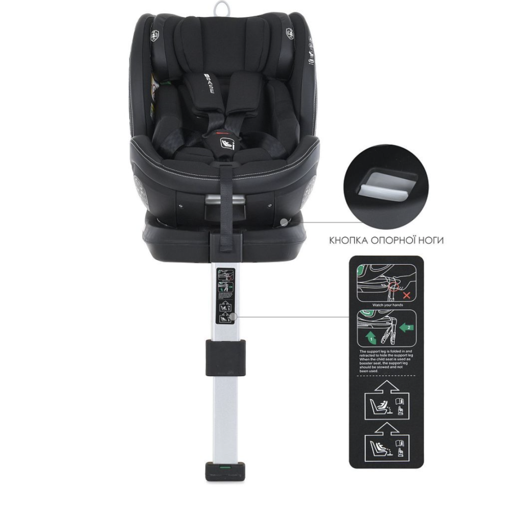 Виконано в сучасному дизайні, використовуючи тканину льон і екошкіру для оббивки. Компактні розміри й легка вага роблять його зручним для перенесення та установки. З поворотним сидінням на 360 градусів, автокрісло дає змогу налаштувати кут нахилу спинки для ідеального положення під час встановлення. Система Isofix і опорна ніжка забезпечують надійне кріплення і складається під базу автокрісла, а після досягнення дитиною 1 року, ви можете встановити його в напрямку руху.