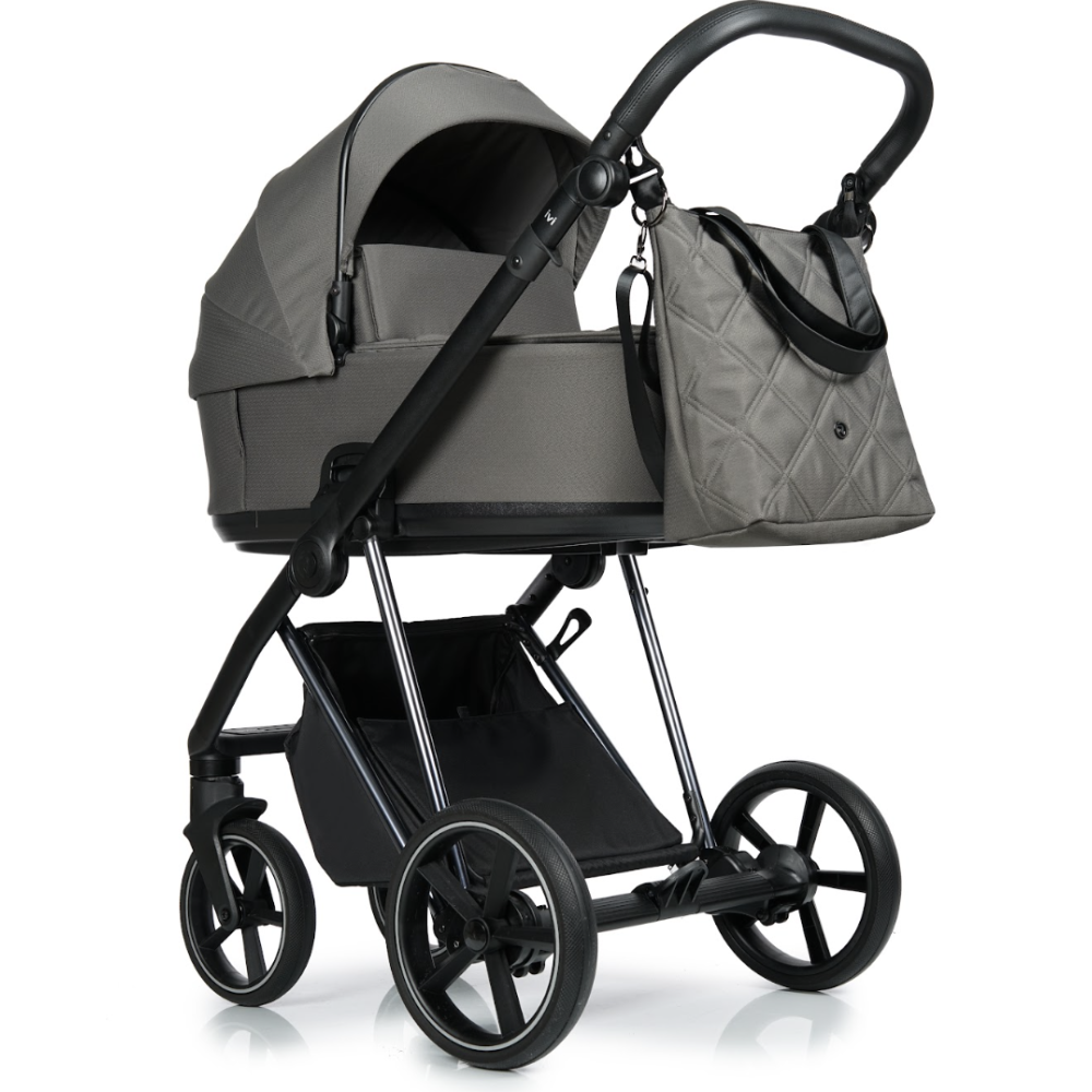 Велика практична та сучасна сумка, що кріпиться до ручки коляски. Можна носити як на плечі, так і через плече за допомогою ремінця.