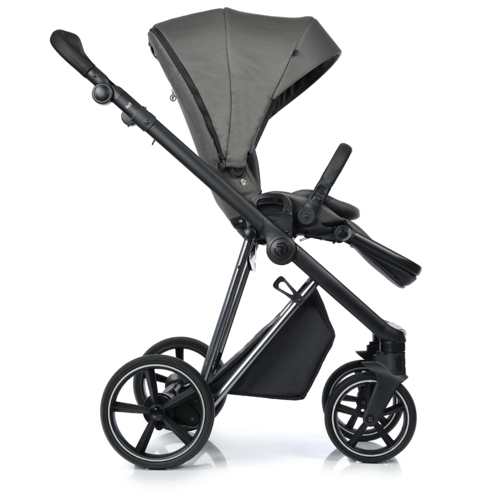 Багатоступінчасте регулювання ручки коляски по висоті – це комфорт водіння коляски для батьків різного зросту. Ручка оброблена екошкірою для більшого комфорту.