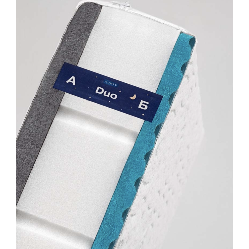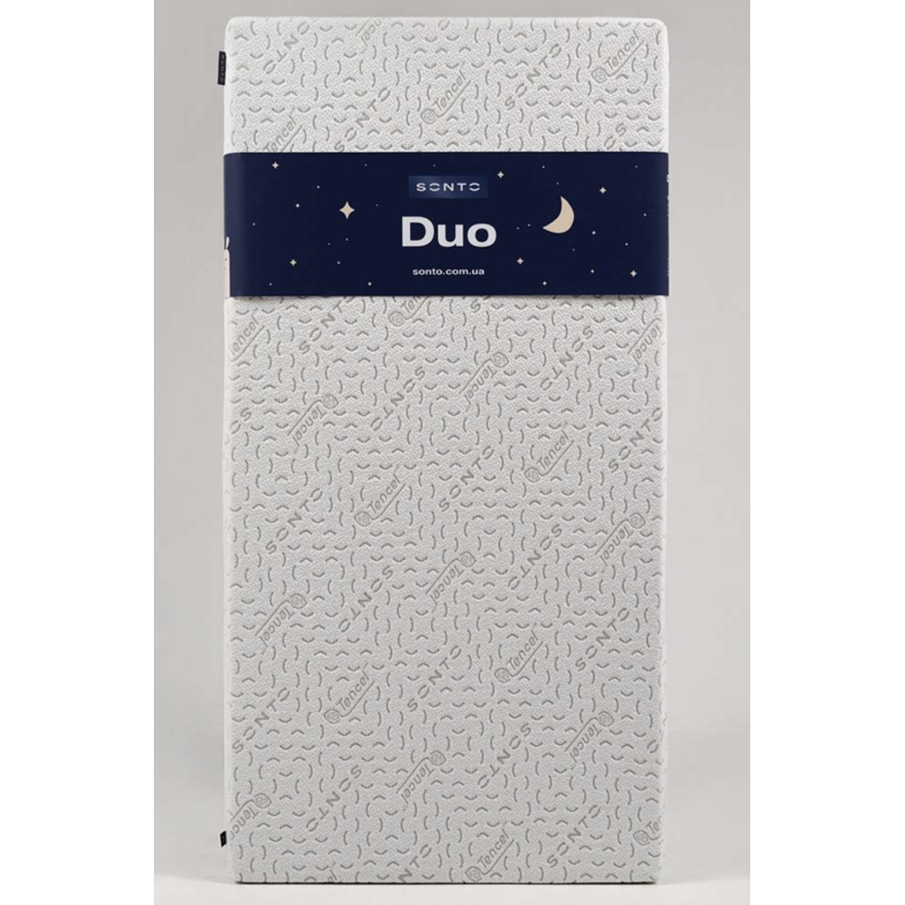 Sonto DUO — гіпоалергенний двосторонній дитячий матрац, який поєднує дві повноцінні поверхні сну: для перших місяців життя та для періоду після того, як дитина почала ходити. Конструкцію розроблено з урахуванням рекомендацій педіатрів і дитячих ортопедів: правильна жорсткість, продумана вентиляція та безпечні матеріали забезпечують здоровий і спокійний сон.