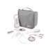 Всі елементи набору розміщені в стильній сумці з декількома відділеннями. З боків вироби вшиті блискавки, розстебнувши які мама отримує зручний для використання вдома футляр з кишеньками для туалетного приладдя.