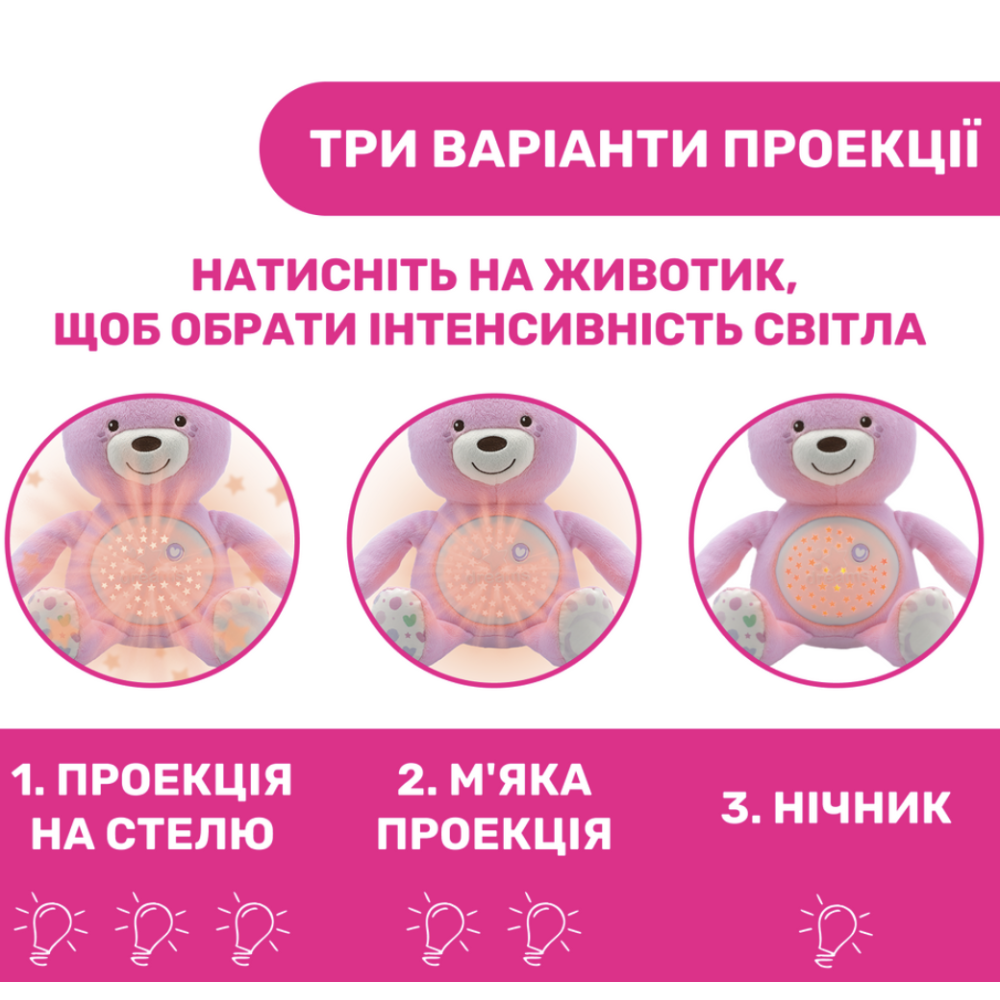 М'який ведмедик з проектором і приємними мелодіями стане кращим другом вашої дитини з самого народження.