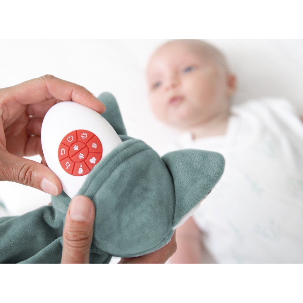М'який комфортер Robin — ніжний як пір'їнка комфортер, заспокоїть Вашого малюка. Особливості: Заспокійливі мелодії. Звуковий модуль відтворює білий шум, звук серцебиття, звуки природи і 3 колискові Автовідключення. Музика автоматично вимкнеться через 10 хвилин Датчик Cry Sensor. Коли Ваша дитина починає плакати, датчик Cry Sensor автоматично активує останню мелодію програну Тримач для пустушки. Немає більше втрачених пустушок Ремінець на липучці. Прикріпіть комфортер до дитячого ліжечка, коляски чи автокрісла Можна прати. Плюшеву накидку можна прати після зняття звукового модуля Невеликий розмір, ремінець на липучці і портативний звуковий модуль, роблять комфортер ідеальним попутником Продукт протестований у відповідності з міжнародними стандартами Zazu — голландський бренд, розробляє продукти, щоб допомогти дітям краще засипати.