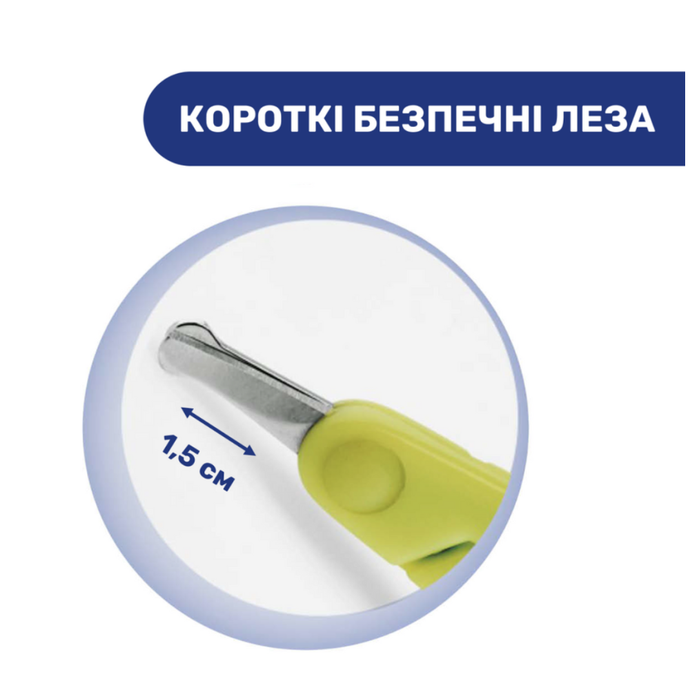 Дитячі ножиці з коротким лезом забезпечують максимальну безпеку під час підстригання нігтиків.