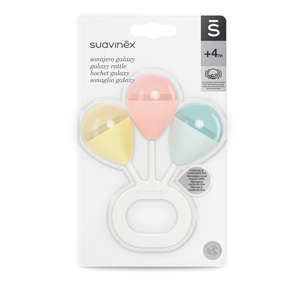Брязкальце «Галактика» - це веселий інструмент, за допомогою якого можна стимулювати дрібну моторику дитини, а також пробудити його цікавість та уяву.