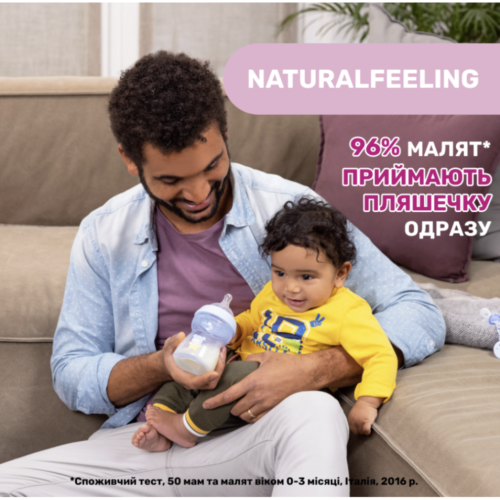 Пластикова пляшечка Natural Feeling NEW з силіконовою соскою робить годування дитини максимально наближеним до грудного. Ця пляшечка — ідеальне рішення для змішаного та штучного вигодовування.