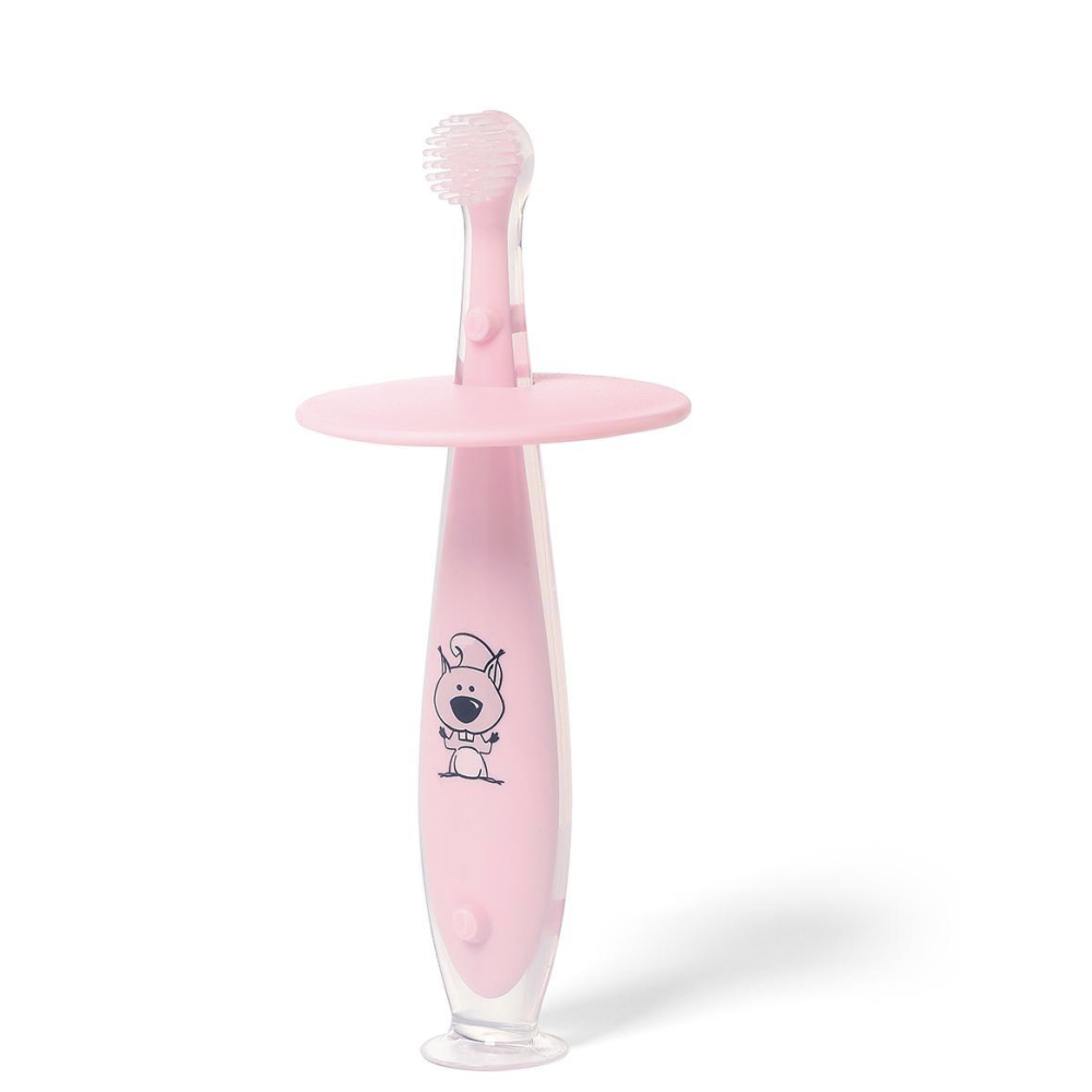 М'яка силіконова зубна щіточка з обмежувачем для запобігання її надто глибокому вкладенню в рот. Призначена для щоденної гігієни ротової порожнини. Завдяки веселому дизайну чистка зубів стане розвагою. Ідеально підходить для самостійного чищення зубів.