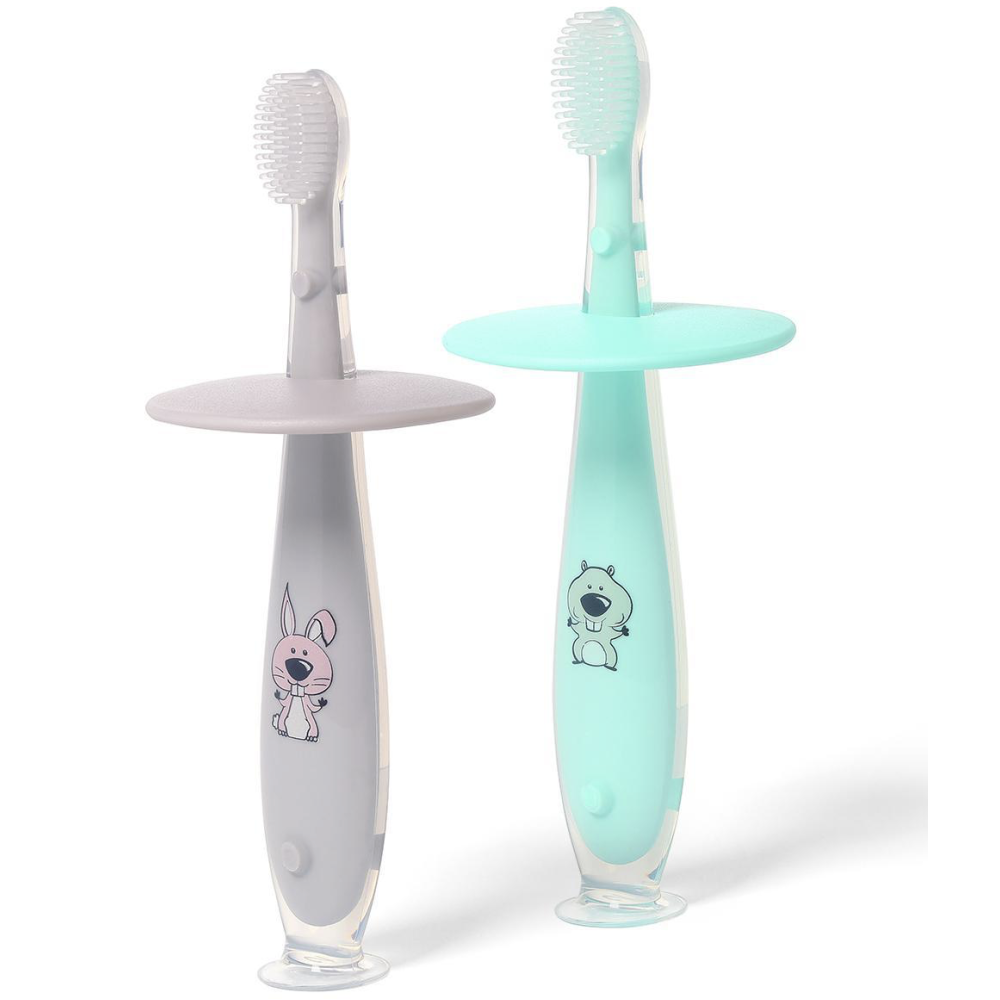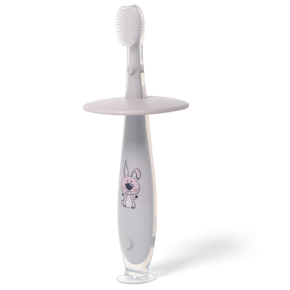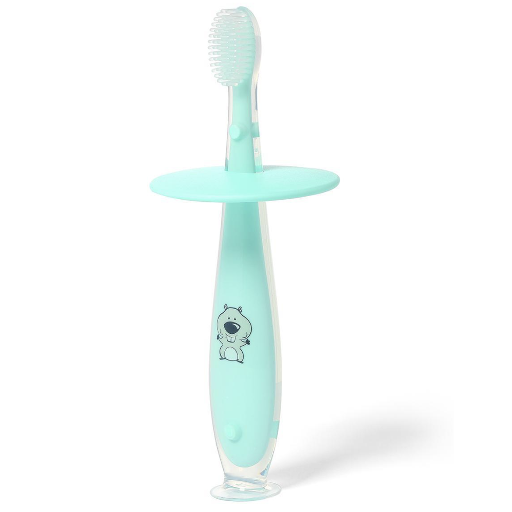 М'яка силіконова зубна щіточка з обмежувачем для запобігання її надто глибокому вкладенню в рот. Призначена для щоденної гігієни ротової порожнини. Завдяки веселому дизайну чистка зубів стане розвагою. Ідеально підходить для самостійного чищення зубів.