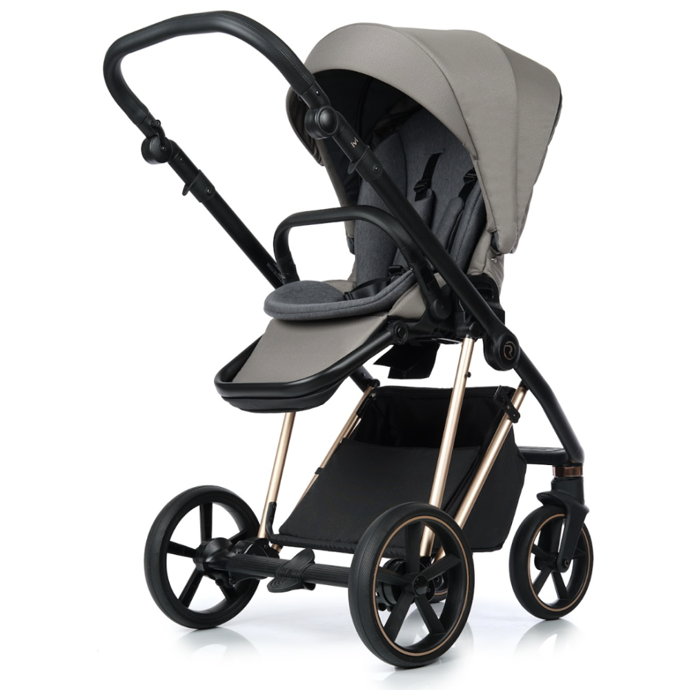Багатоступінчасте регулювання ручки коляски по висоті – це комфорт водіння коляски для батьків різного зросту. Ручка оброблена екошкірою для більшого комфорту.