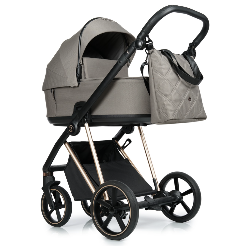 Велика практична та сучасна сумка, що кріпиться до ручки коляски. Можна носити як на плечі, так і через плече за допомогою ремінця.