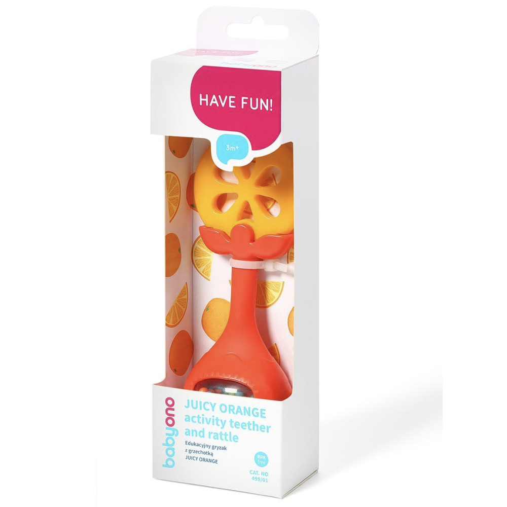 Цей оригінальний прорізувач Babyono був розроблений з урахуванням потреб наймолодших дітей. Його форма забезпечує зручний захват для маленьких дитячих рук. Він заспокоює біль при прорізуванні зубів, оскільки еластичний матеріал з нерівною структурою чудово масажує дитячі ясна. Всередині маленькі кульки брязкають з кожним рухом - вони спонукають дитину до вправ та гри, тим самим стимулюючи розвиток вашої дитини.