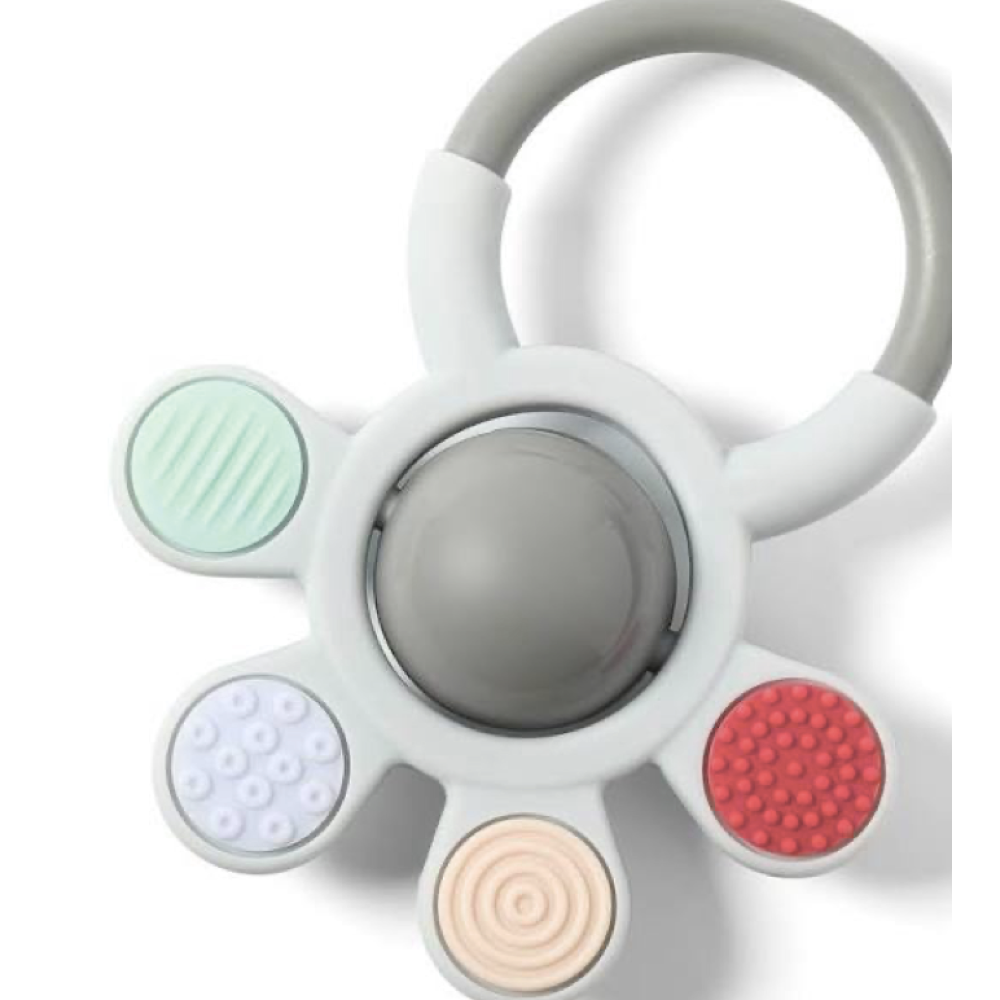 Силіконовий прорізувач - незамінний продукт в період прорізування зубів. Легко схопити і тримати в руках дитини. Зроблений з силікону - матеріалу, який не містить бісфенолу А. Всередині є м'ячі, що брязкають при кожному русі, спонукаючи дитину до занять фізичними вправами та грою та стимулюючи розвиток дитини.