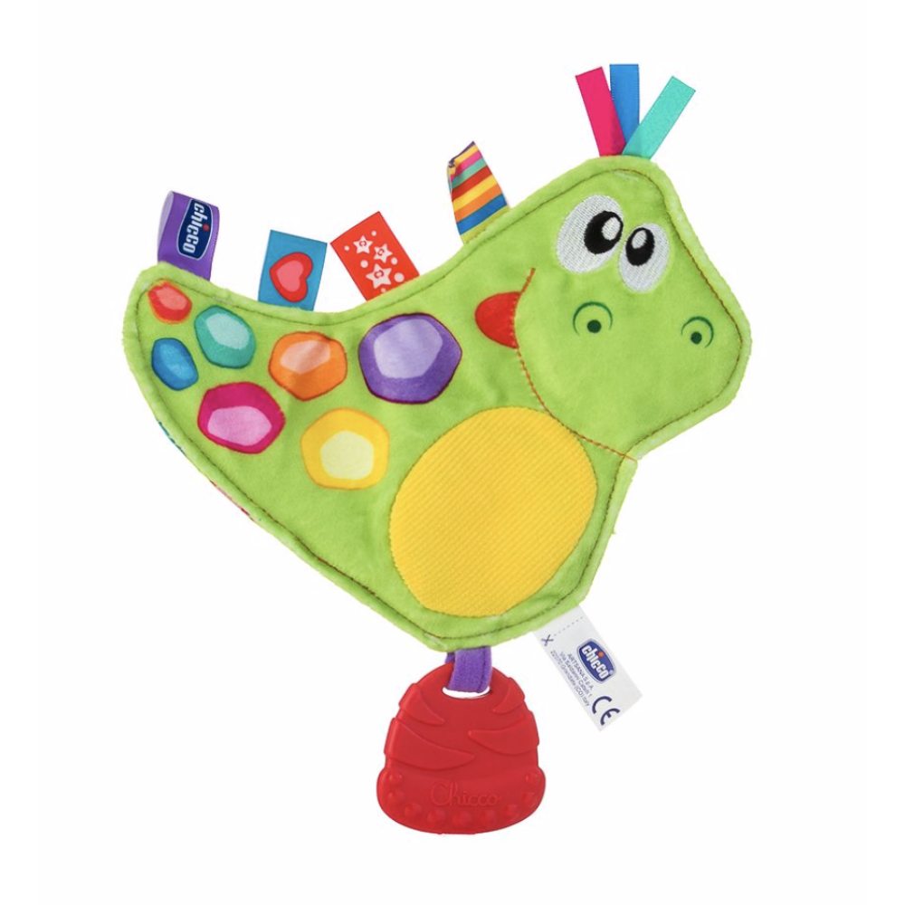 М'який та барвистий динозаврик Діно допомагає розвивати тактильні навички завдяки різним тканинам. Він стимулює візуальний розвиток, дотик і цікавість до пізнання нового.