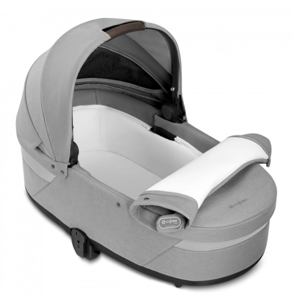 Люлька Cybex Balios дуже простора і дозволить малюкові в одязі, відчувати себе цілком комфортно лежачи в ній, її внутрішня довжина 77 см. Люлька має ручку для перенесення, а також вбудовану в капюшон москітну сітку для провітрювання. Всередині люльки м'який, досить високий матрацик, що забезпечує правильне положення - положення лежачи дитини. Внутрішня оббивка коляски, знімна, і її можна прати.