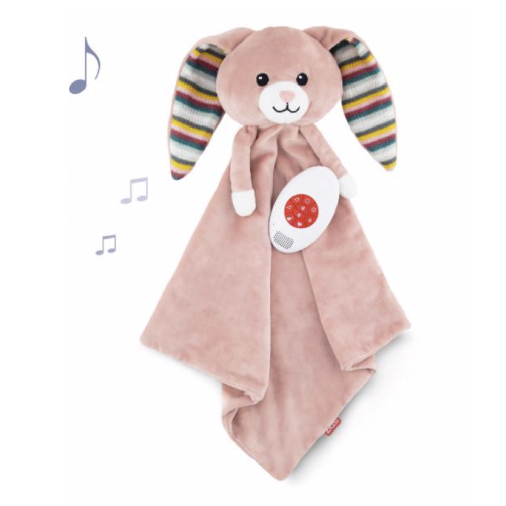 - Звуковий модуль із заспокійливими мелодіями (білий шум, звук серцебиття, звуки природи і 3 колискові мелодії).