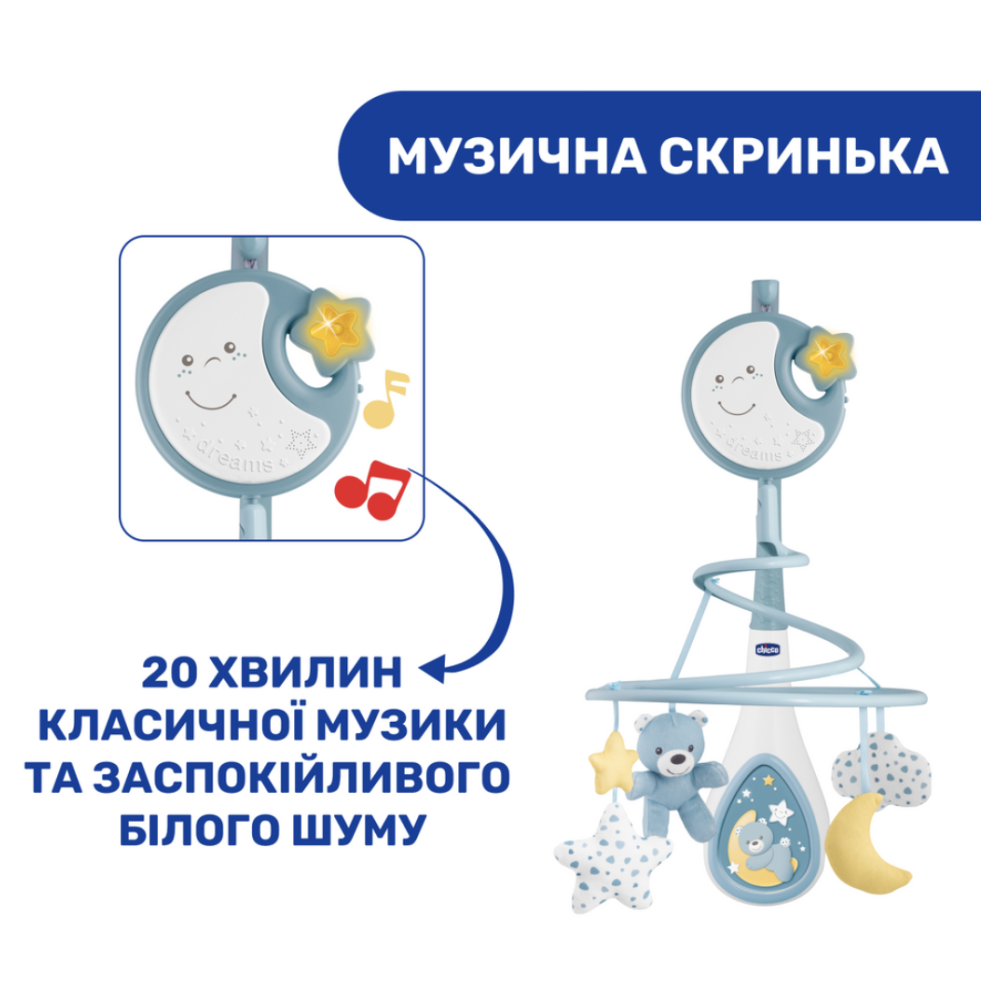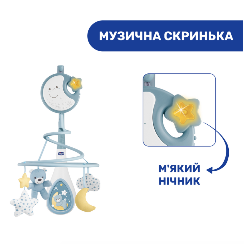 Іграшка на ліжко "Next2Dreams" – це музичний мобіль з нічником для дітей з народження, який підходить для більшості моделей дерев'яних ліжок.
