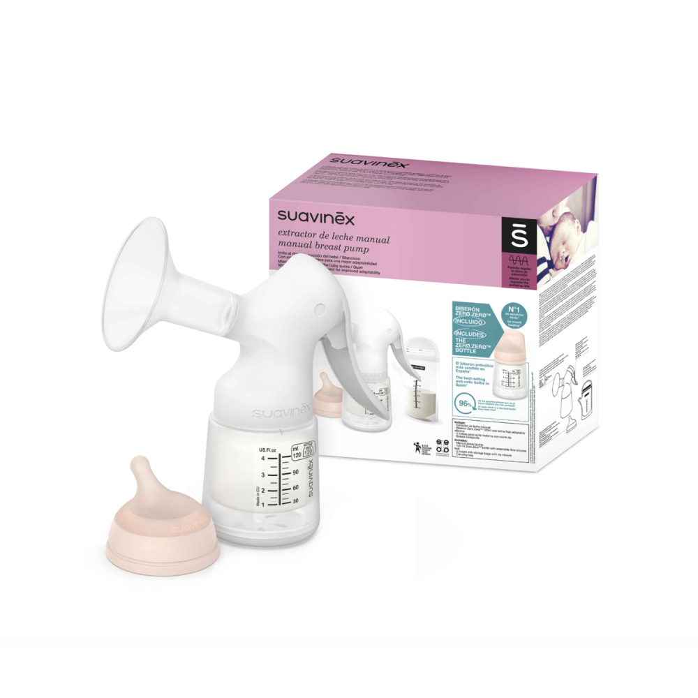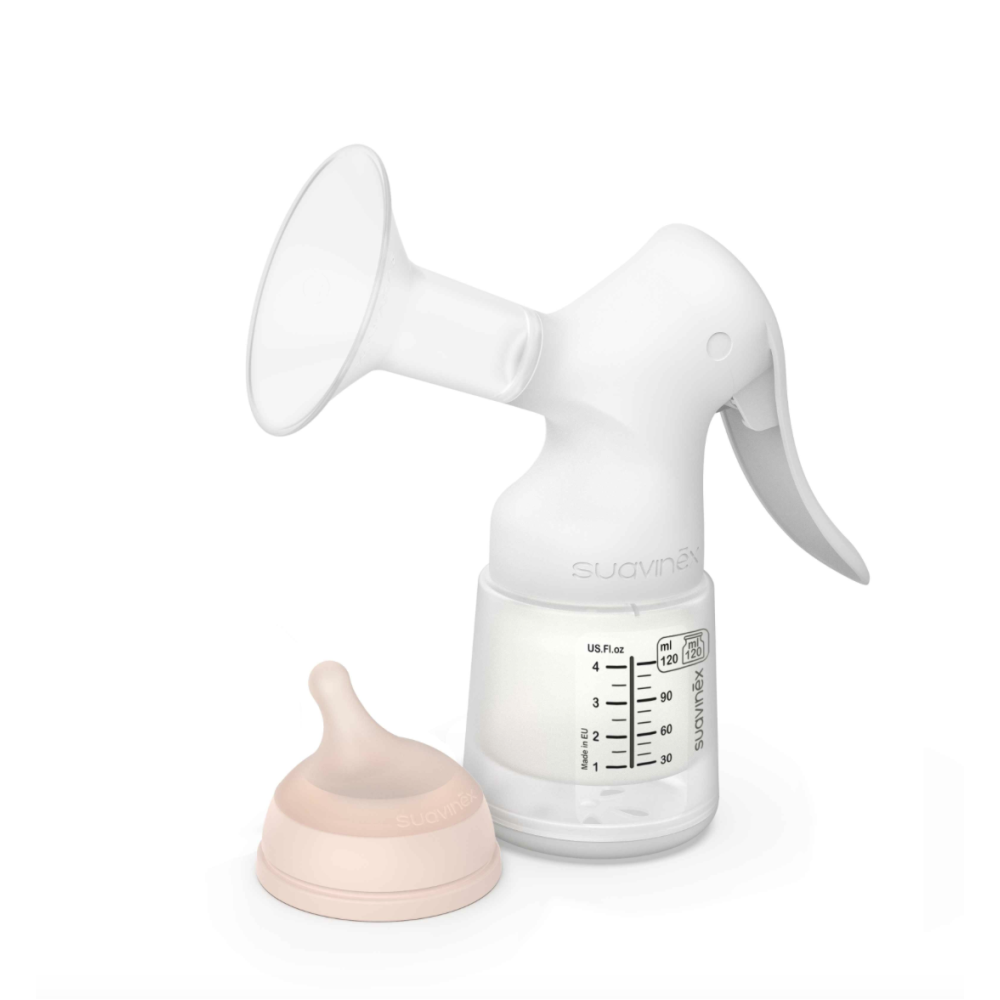 Suavinex, ручний набір для зціджування грудного молока з анатомічною ручкою для кращого захвату.