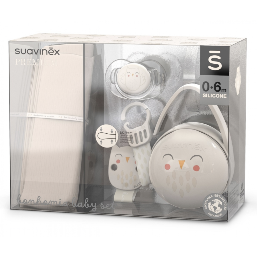 З перших днів подбайте про комфорт мами та її малюка, обравши набір товарів для малюків Suavinex Bonhomia . Практичний комплект підійде як на прогулянці, так і домашньому використанні.