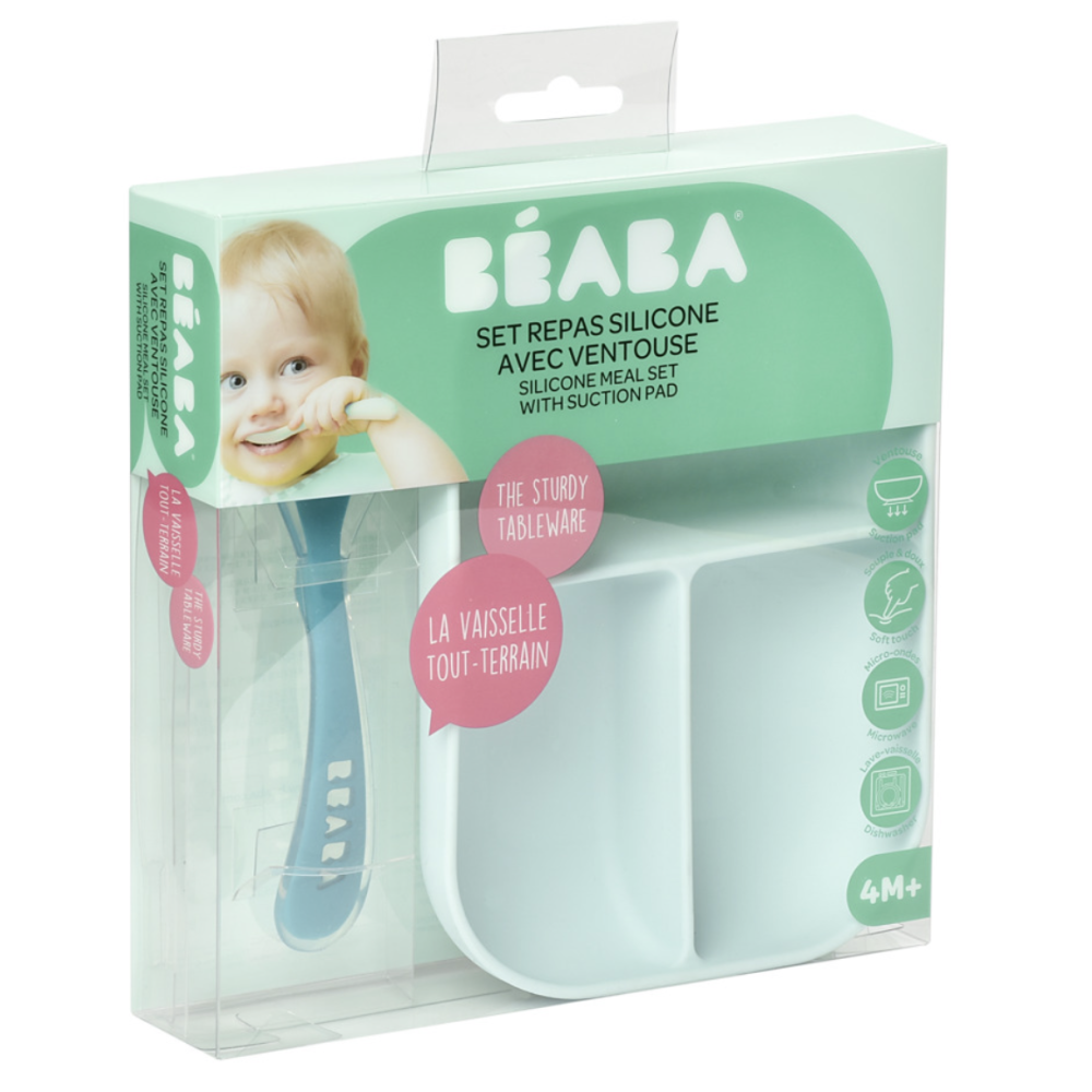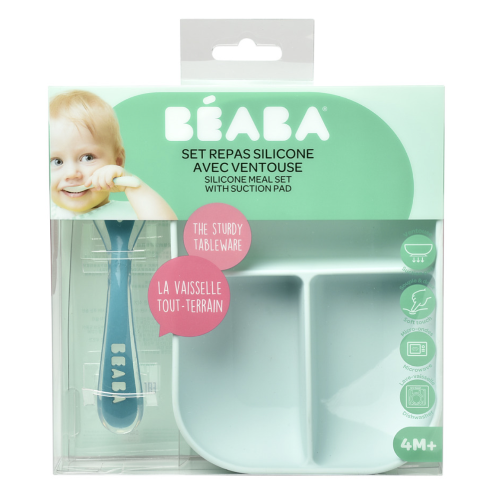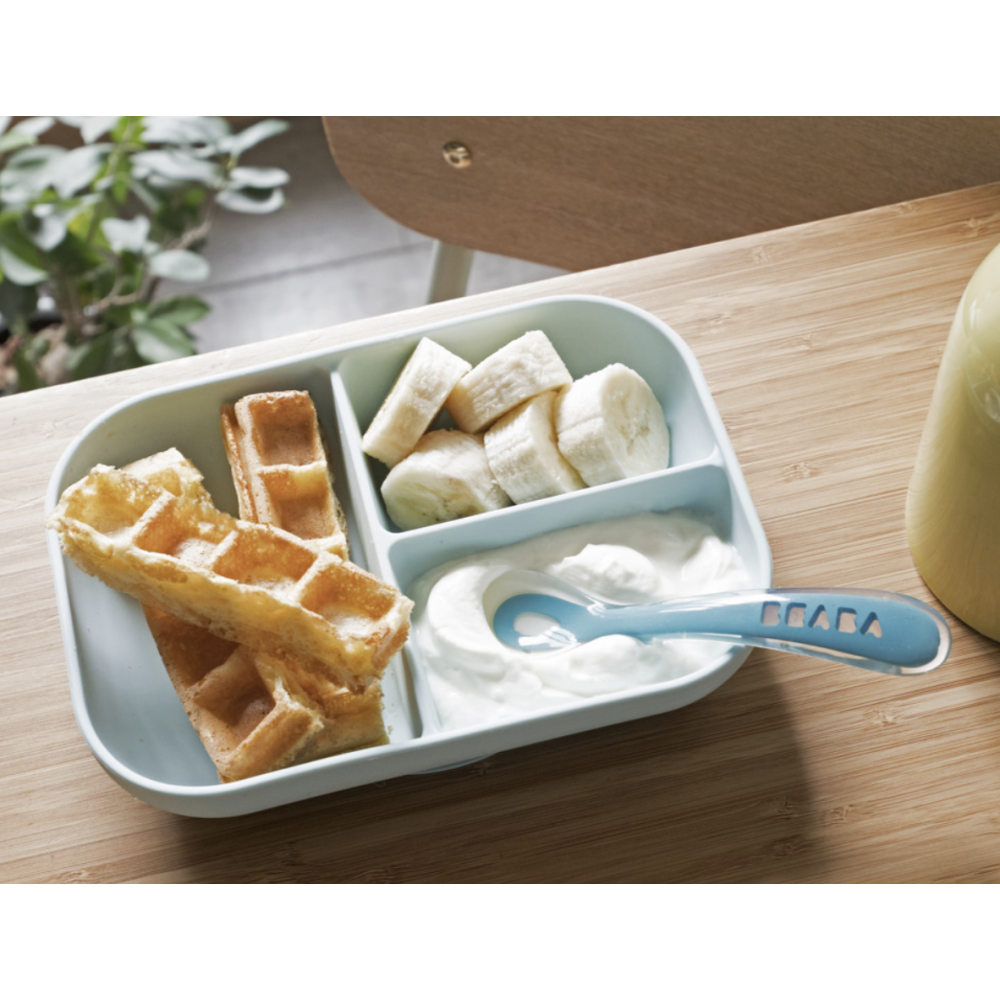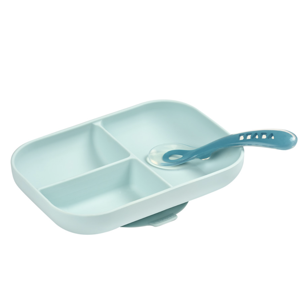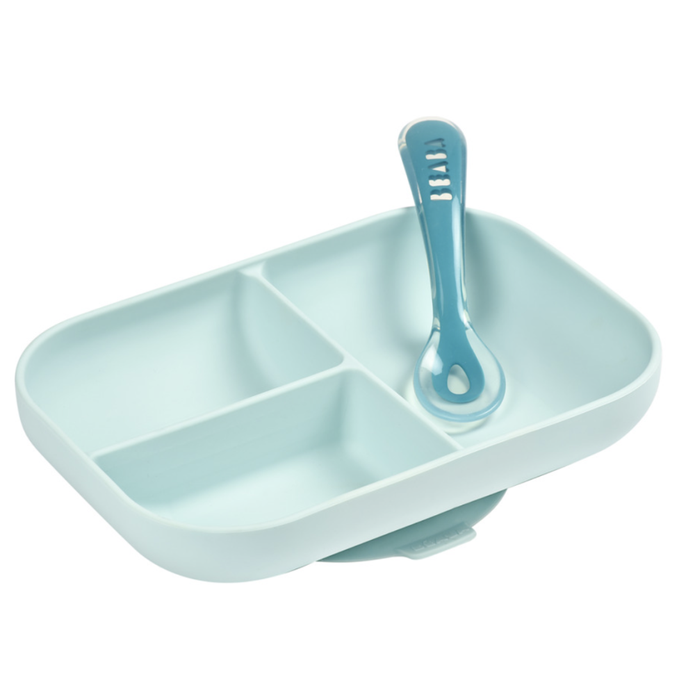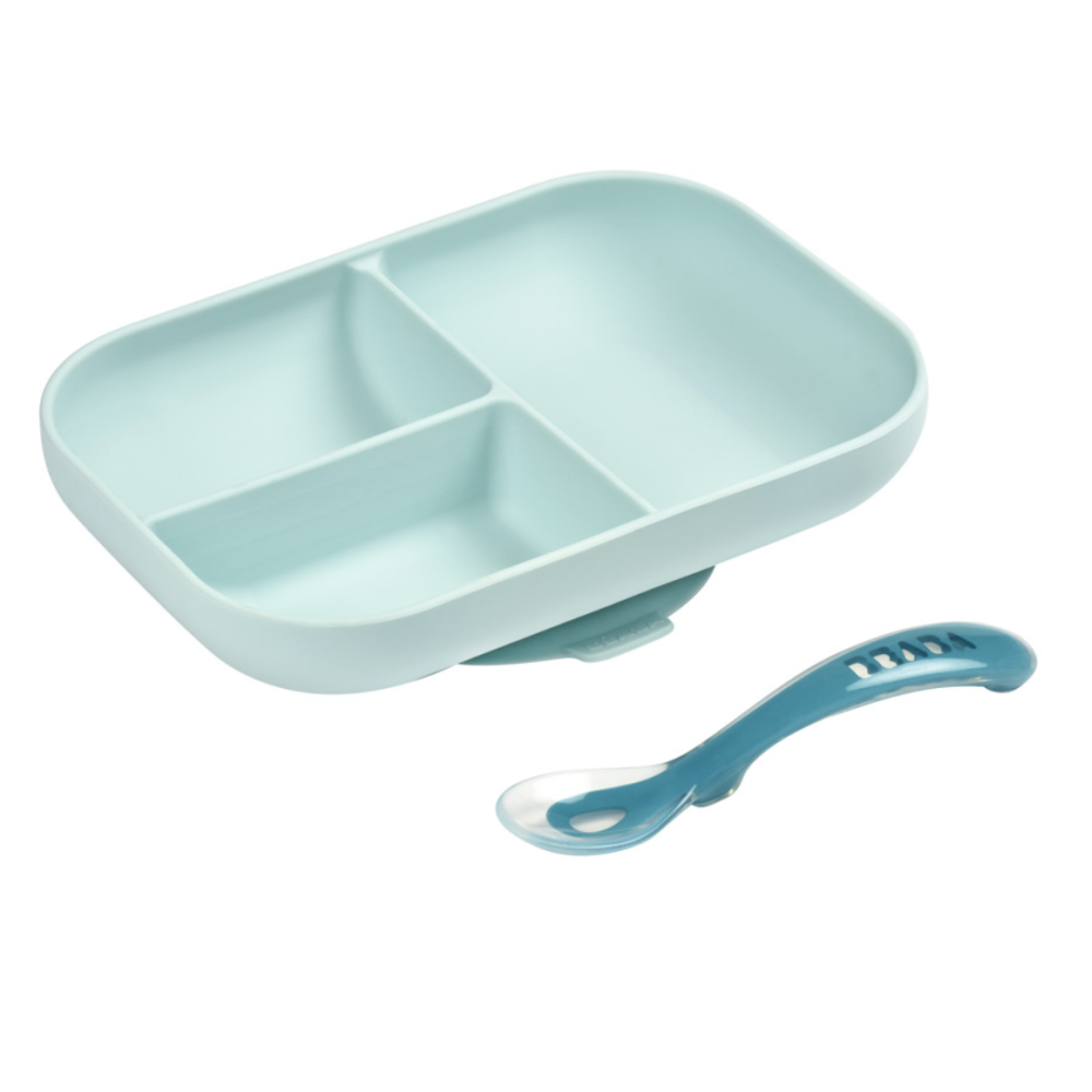Набір Beaba із силіконовою порційною тарілочкою на присоску та силіконовою ложечкою. Стильний, міцний, практичний, безпечний.