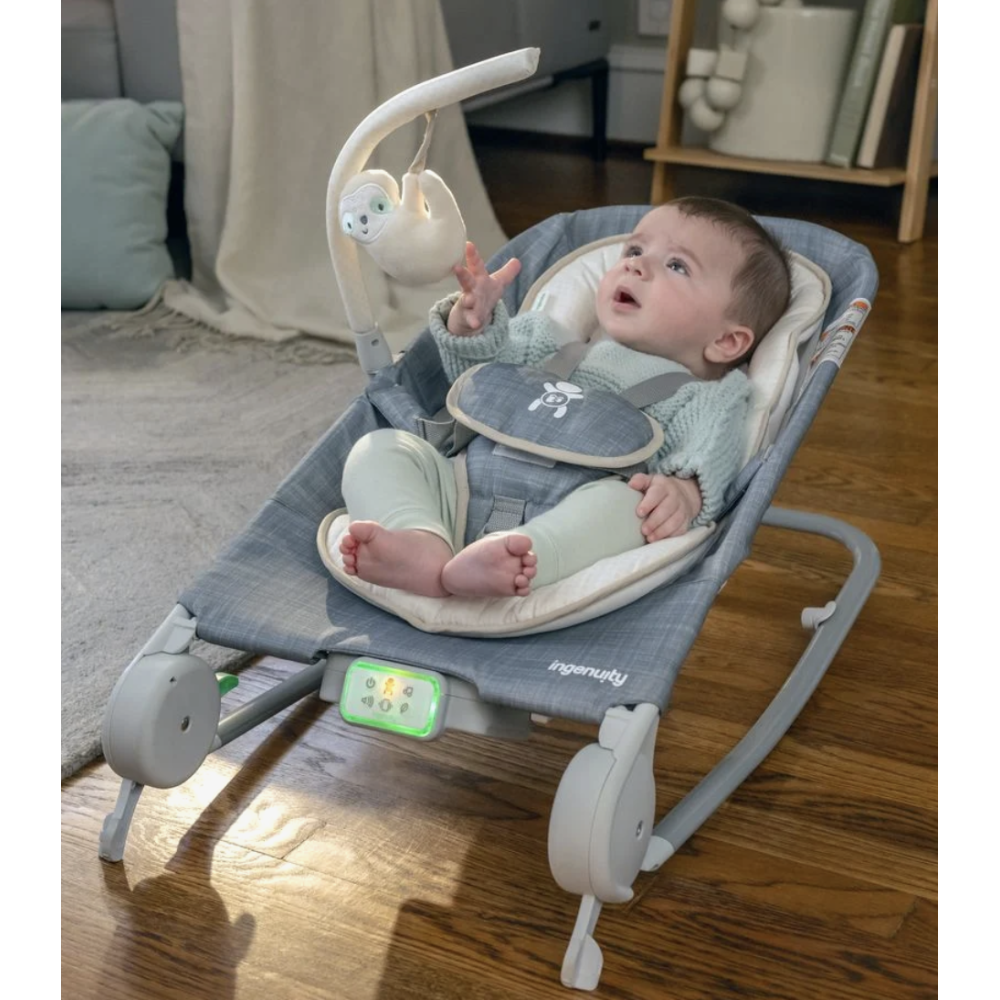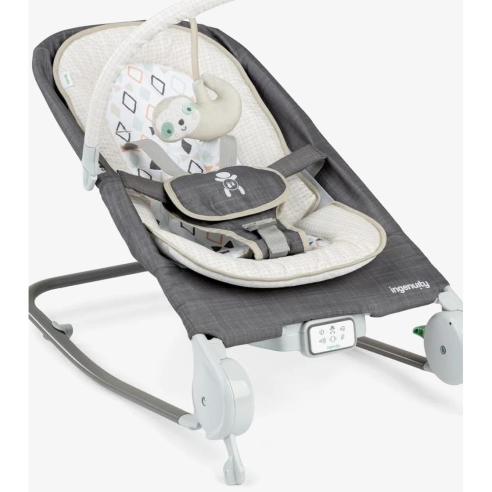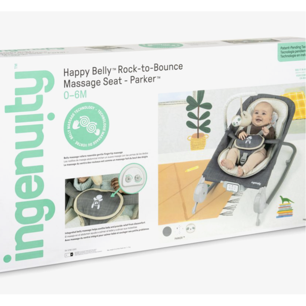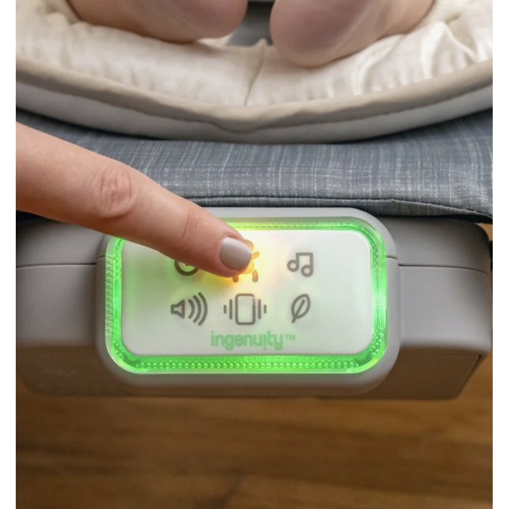 Шезлонг Ingenuity Parker-Chambray з технологією м’якого масажу Happy Belly для дітей від народження і до досягнення ними ваги 9 кг.