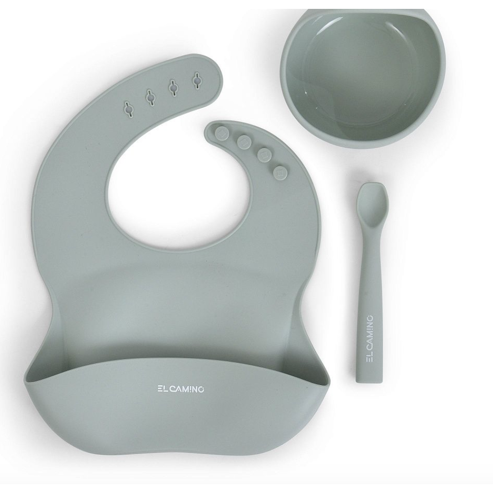 EL Camino ME 1173-1 Mix (зелений) — стильний базовий комплект для перших експериментів зі смаками. Тарілка тримає консистенцію пюре/каші, ложка м’яко контактує з яснами, нагрудник збирає крихти і бризки. BPA-free силікон витримує активне використання, легко миється і не боїться падінь; посуд можна підігрівати в мікрохвильовці.