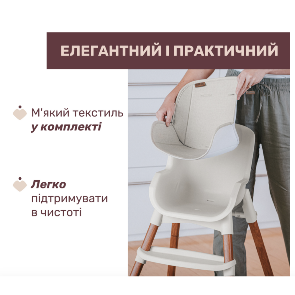 Polly Zest Plus – ергономічний та легкий стільчик для годування 3 в 1, який забезпечує високий рівень комфорту на кожному етапі зростання і розвитку малюка від 6 місяців і до 40 кг.