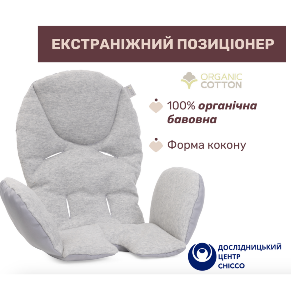 - М'який позиціонер виготовлений зі 100% органічної бавовни, який створює затишне середовище для малюка.